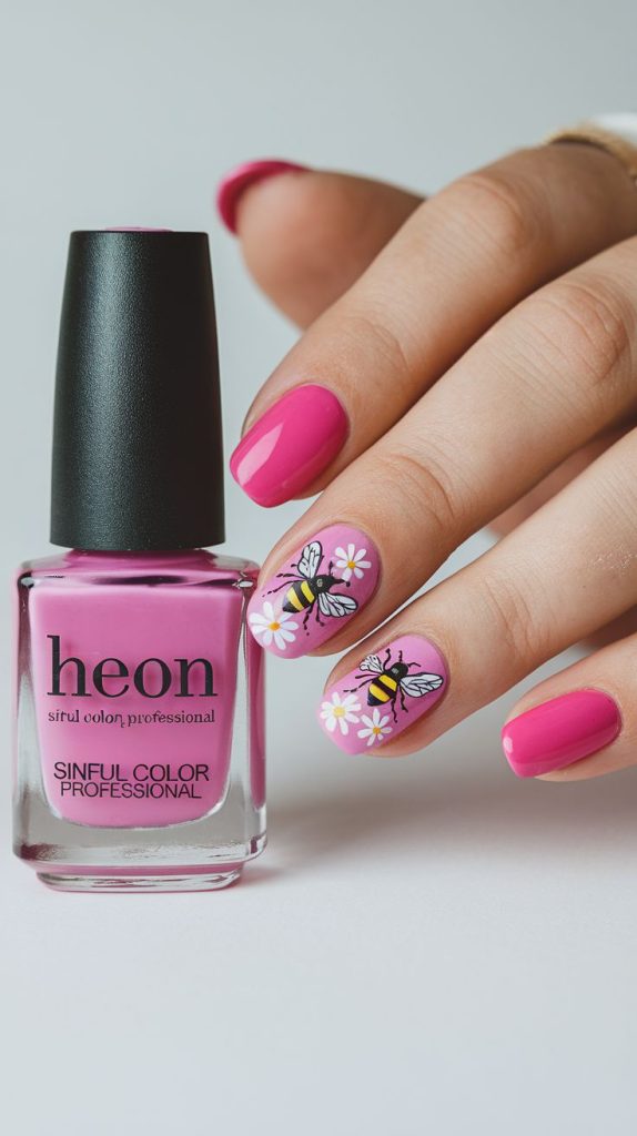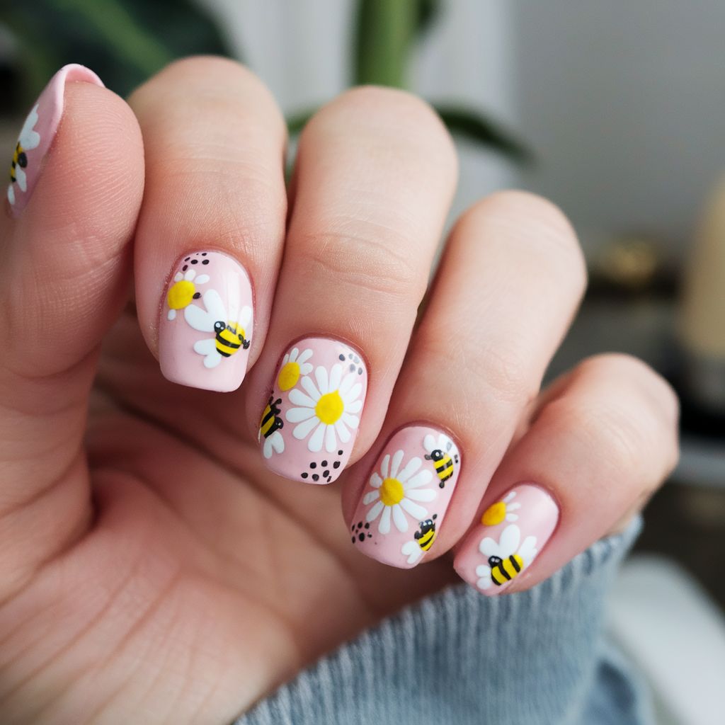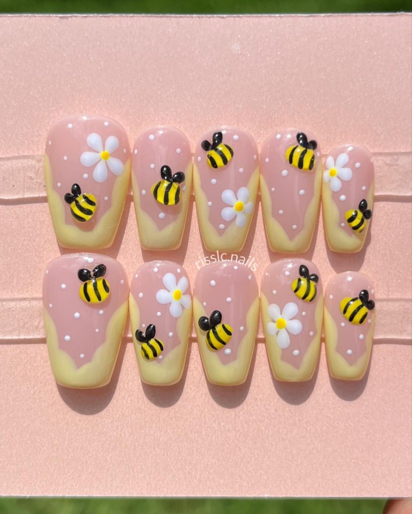 Whether for a special occasion or everyday wear, the bee and flower combo remains a favorite. It allows for creativity while keeping nails looking fun and fresh.