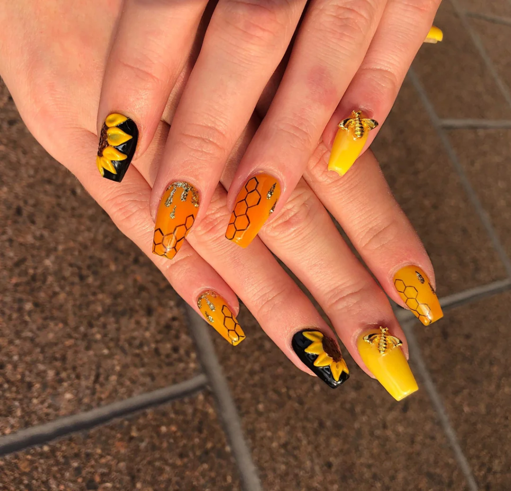 Below Are The 7 Bumble Bee Nails Design Ideas List
